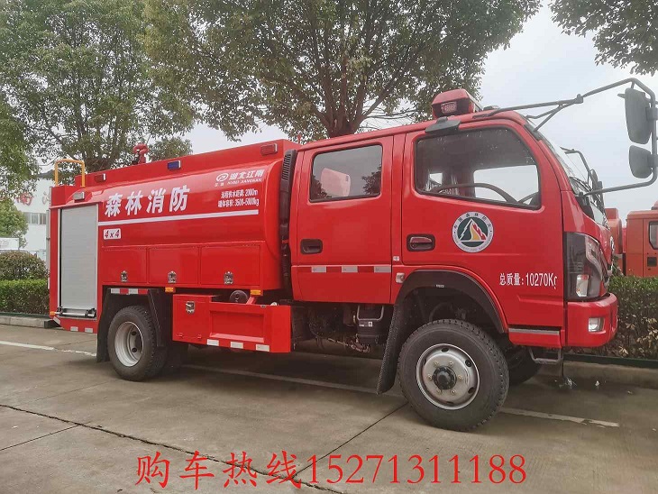 森林消防車,用于森林防火和滅火的車輛。用于向火災地區運送消防人員、設備和工具;噴灑水和化學滅火劑;設立隔火帶或開出生土隔離帶。一般由履帶式或輪式的車輛改裝而成。推土鏟裝在前方,用于開道。開帶裝置掛在后方,用于開出生土隔離帶。配備的消防設備和工具有液箱、水泵、噴射器、油鋸、滅火噴霧器、鍬和手鋸等..